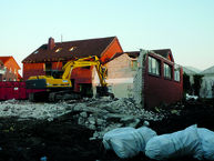 Die Arbeiten zum Abbruch des alten Feuerwehrgerätehauses begannen am 19. Mai 2008. Zuvor feierten die Kameradinnen und Kameraden der Feuerwehr und die Kolleginnen und Kollegen des Rettungsdienstes eine zünftige Abbruchfete. Am 11. Juni 2008 schließlich begannen die Rohbauarbeiten für das Feuerwehrgerätehaus mit Rettungswache.