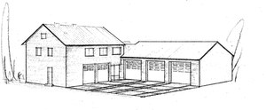 Nach diesem Entwurf blieben von den bisherigen Fahrzeugboxen zwei Einstellplätze erhalten, die als zweiter Werkstattraum und Garage für den Kommandowagen genutzt werden konnten.